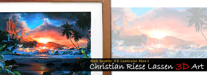 アートワークはラッセン氏自身が手掛け、神秘的な海の世界をより印象深くリアルに3Dで表現しています。今回、特別に数量限定でフレーム付で販売することになりました。