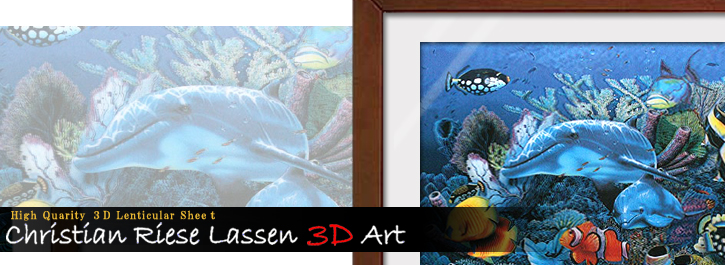 アートワークはラッセン氏自身が手掛け、神秘的な海の世界をより印象深くリアルに3Dで表現しています。今回、特別に数量限定でフレーム付で販売することになりました。